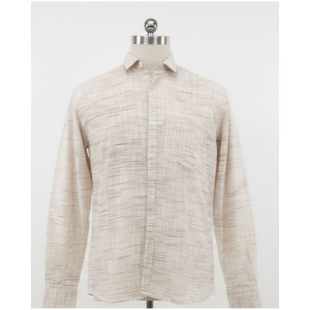 Beige Textured Cotton Men's Shirt Full Sleeve
