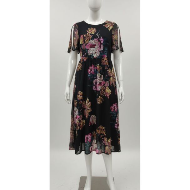 This mid-range dress is constructed for superb quality, ensuring you look your absolute best without compromising on comfort. The combination of the dark base and bright florals makes it incredibly versatile for seasonal transitions. It is the ultimate grab-and-go outfit solution for instantly creating a striking, party-ready ensemble.