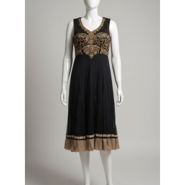 Black Gold Embroidered Sleeveless Anarkali Dress