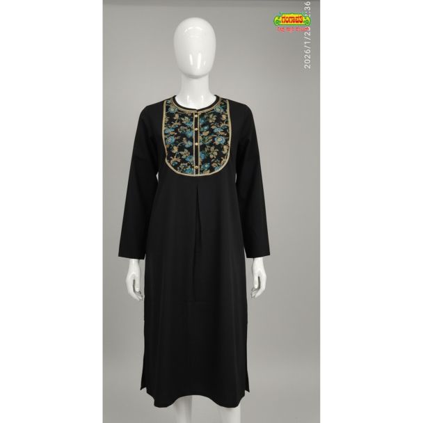 Why Buy This Product? This budget-friendly black kurti excels in versatility and easy styling. The rich floral yoke adds a pop of sophisticated color against the solid black, instantly elevating a basic silhouette. It offers all-day comfort, making it a staple for office wear, casual outings, or light festive events without compromising on style.