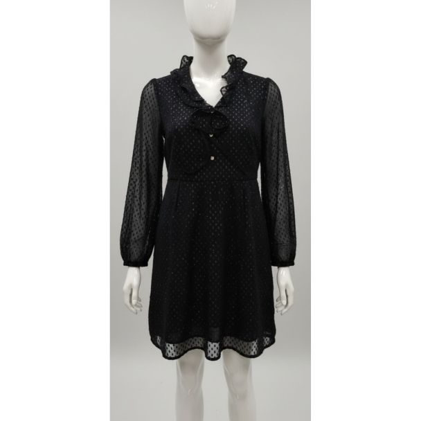 Black Polka Dot Chiffon Dress Long Sleeve Ruffle
