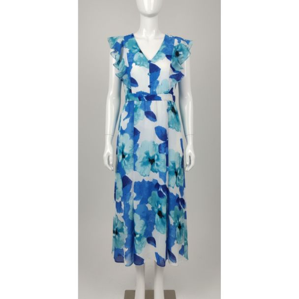 Blue Floral Maxi Dress with Ruffled Sleeves for Occasional Wear