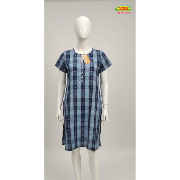 - Pattern: Traditional check or plaid pattern, creating a balanced, non-distracting geometric look suitable for sleepwear or casual kurtis.