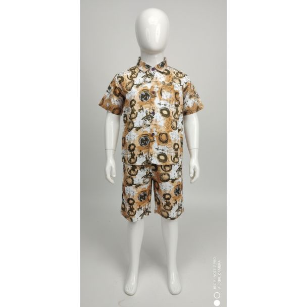 Boys Abstract Print Cotton Shirt Shorts Co-ord Set