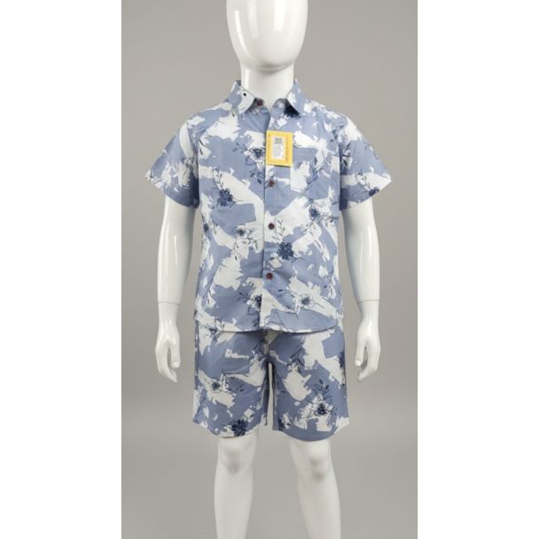 Boy's Blue Floral Print Shirt and Shorts Set