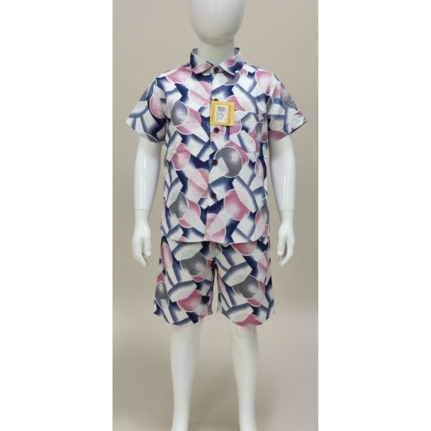 This delightful boys' shirt and shorts set offers a fun and stylish outfit for warm weather. The playful abstract print adds a touch of modern flair, making it a great choice for casual occasions. This set is made for active boys who want to look good and feel comfortable.