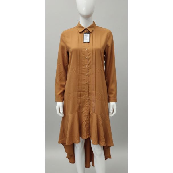 Discover sophisticated style with this mid-range brown shirt tunic dress, perfectly tailored for party and occasional wear. Its rich, solid brown hue and contemporary silhouette make it an standout addition to any modern wardrobe, offering great quality and refined structure.