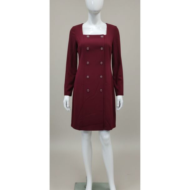 Burgundy Red Long Sleeve Double Breasted Dress Square Neckline