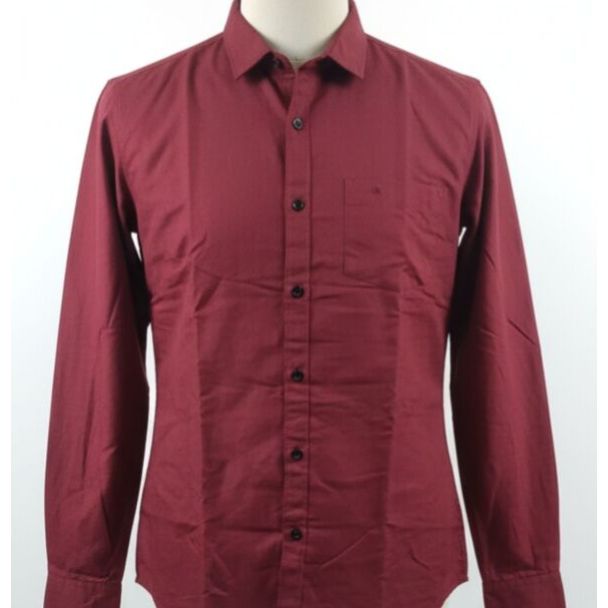 Burgundy Solid Cotton Shirt Long Sleeve Collar Neck