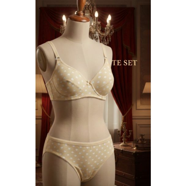 Indulge in comfort and style with this exquisite cream polka dot lingerie set, designed for the modern woman who values both elegance and everyday wear. This matching bra and panty set is perfect for those seeking a touch of whimsy and charm in their lingerie collection. Experience the perfect blend of comfort and style, making it an ideal choice for daily wear or special occasions.