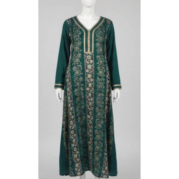 - Color: Emerald Green with a floral print in complementary shades of gold and brown.