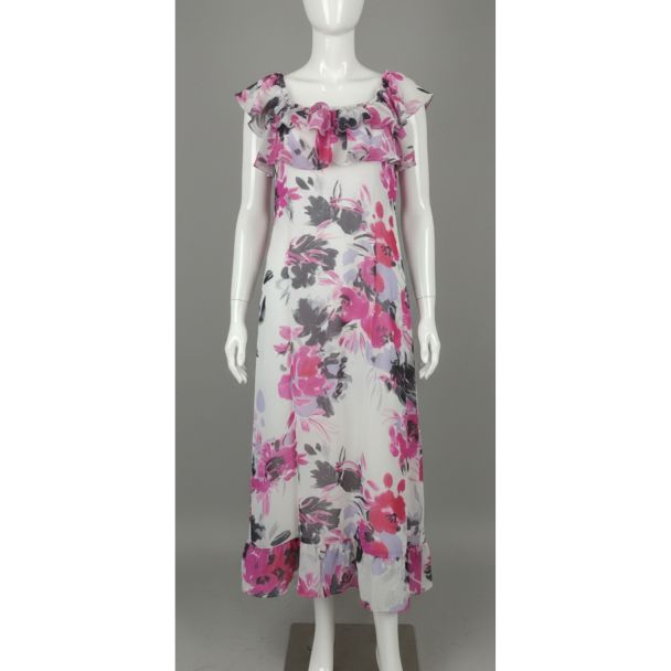 Floral Chiffon Maxi Dress Ruffle Detail Knee Length