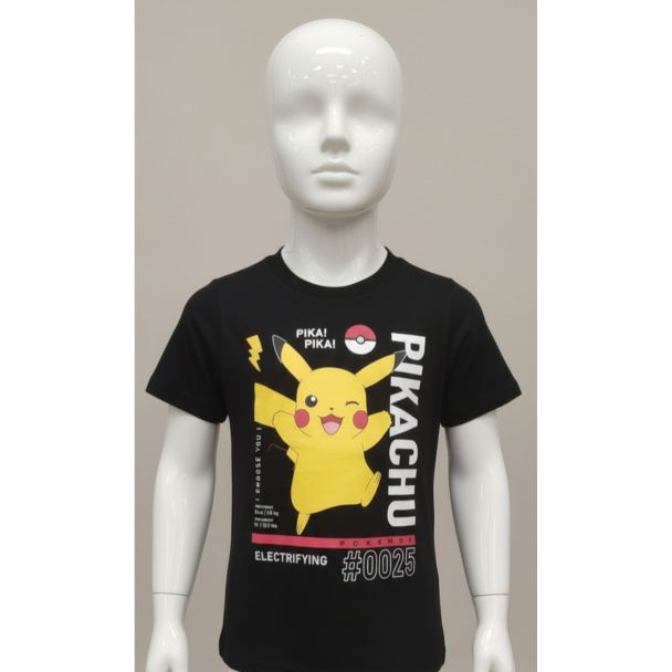 Introduce your little one to the world of Pokémon with this stylish and comfortable black cotton t-shirt! Designed specifically for kids, this tee showcases a dynamic Pikachu graphic that's sure to capture their imagination. This t-shirt is a must-have for any young Pokémon fan. Offering exceptional quality at a budget-friendly price, this t-shirt is a perfect choice for parents looking for durable and fun clothing options for their children. It's an excellent value that you won't find anywhere else!