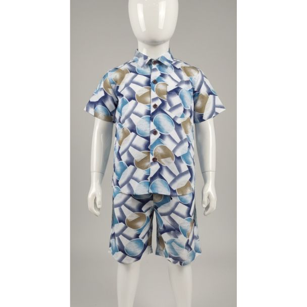 Kid's Blue & White Abstract Print Cotton Shirt & Shorts Set