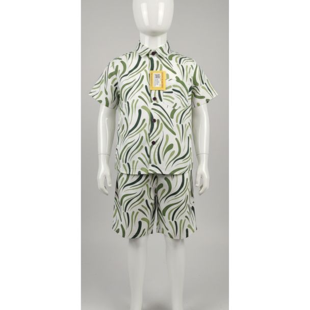 Kids' Vibrant Green Abstract Print Cotton Shirt and Shorts Set