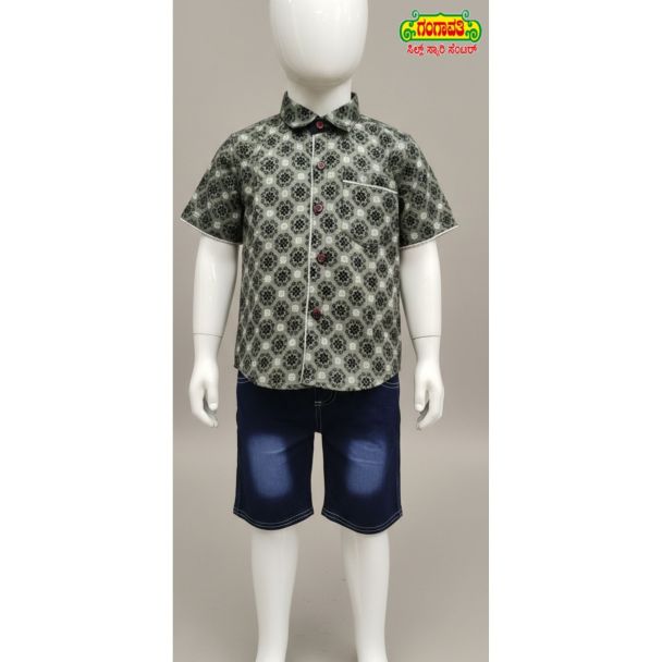 Why Buy This Product? This kids' set offers a complete outfit solution, saving you time and effort. The cotton fabric ensures breathability, perfect for active kids. The stylish design, featuring a geometric print shirt paired with denim shorts, makes it versatile for various occasions, from casual outings to playdates. It's a fantastic value for money, combining quality and style at a budget-friendly price point. It also includes the shorts, which makes it an easy buy.