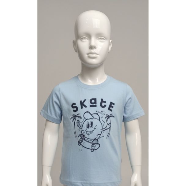 Kids Light Blue Cartoon Skate T-Shirt Short Sleeve