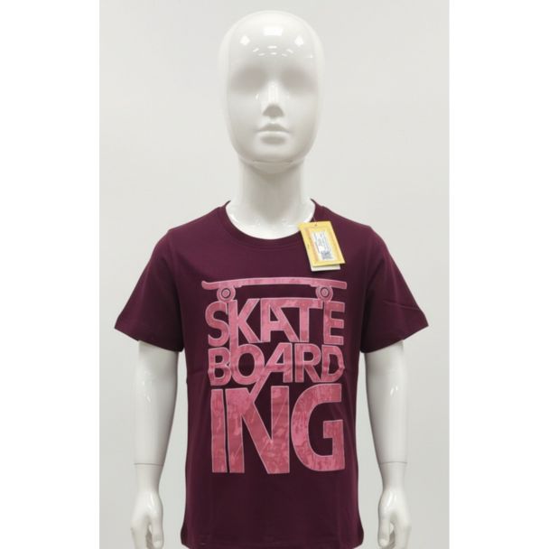 Kids Maroon Skateboarding Print Cotton T-Shirt