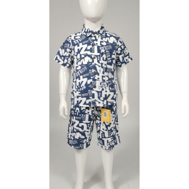 Kids' Navy Blue and White Printed Summer Set
