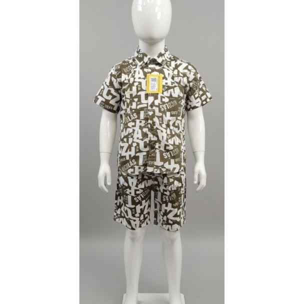 Why Buy This Product? This kids' set offers a combination of style and practicality. The unique olive green and white print makes it stand out, while the cotton fabric ensures all-day comfort. The classic design is versatile enough for various occasions, making it a great addition to any child's wardrobe. Plus, the affordable price makes it an excellent value for money.