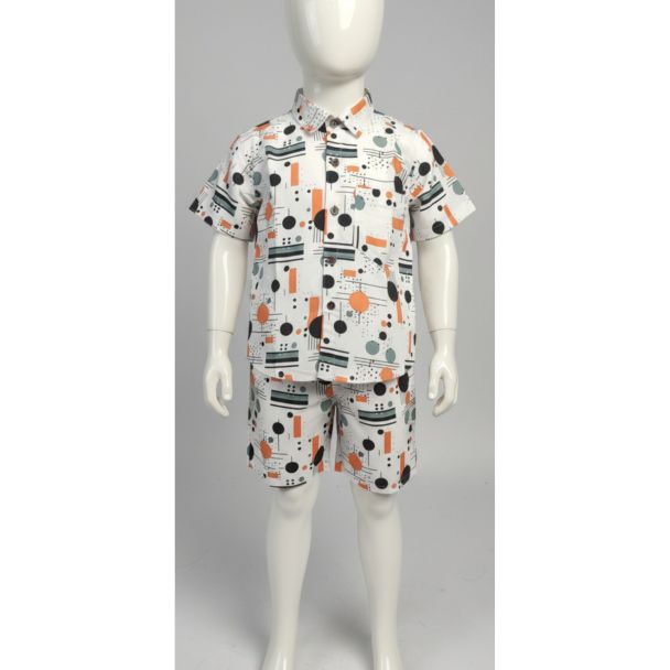 Kids' Printed Cotton Shirt and Shorts Set - White