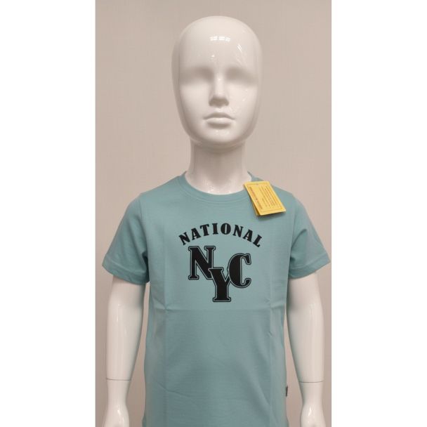 Kids' Teal Blue Cotton T-shirt with 'NATIONAL NYC' Print