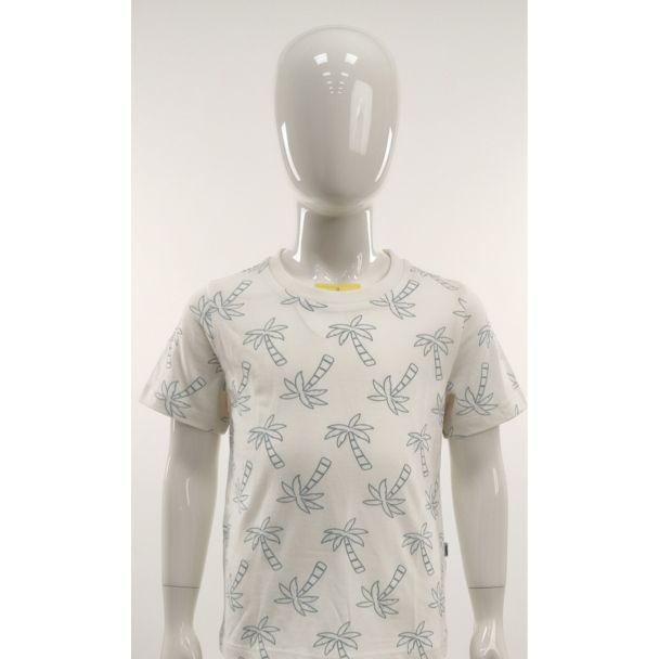 Kids White Cotton T-Shirt with All-Over Palm Tree Print