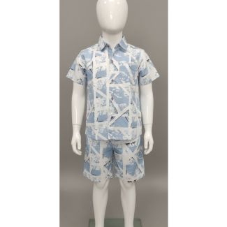 Kid's Printed Sky Blue Cotton Short Sleeve Shirt & Shorts SetAs low as ₹120.00 Regular Price ₹240.00