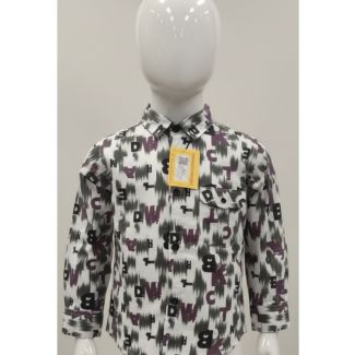 Kids White Printed Cotton Shirt Full Sleeve