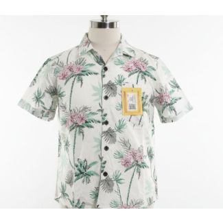 White Tropical Print Short Sleeve Camp Shirt with Collar