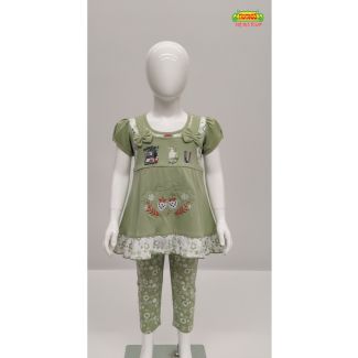 2. Sage Green floral print kurti and leggings set for kids, India