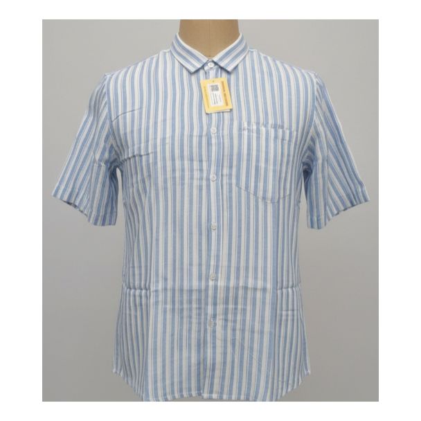 Light Blue White Striped Cotton Shirt Half Sleeve Casual