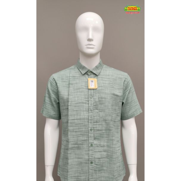 Light Green Slub Cotton Mens Shirt Half Sleeve Regular Fit
