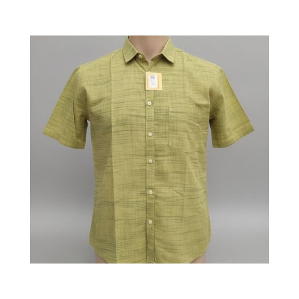 Light Olive Green Cotton Men's Shirt Short Sleeve Solid