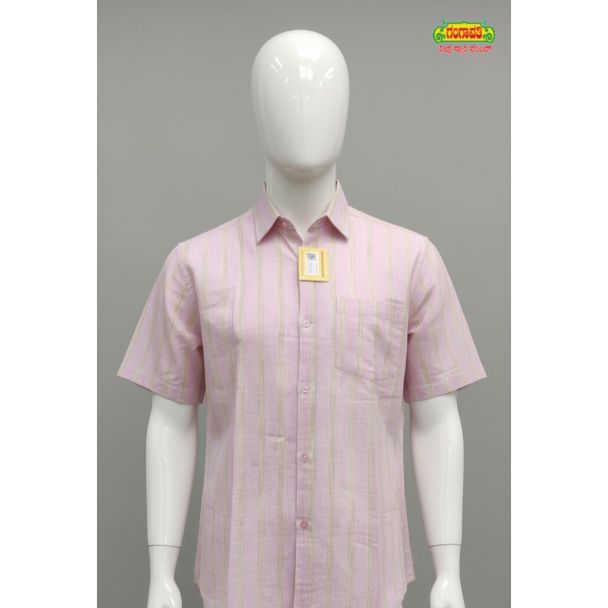 Light Pink Striped Cotton Mens Half Sleeve Casual Shirt