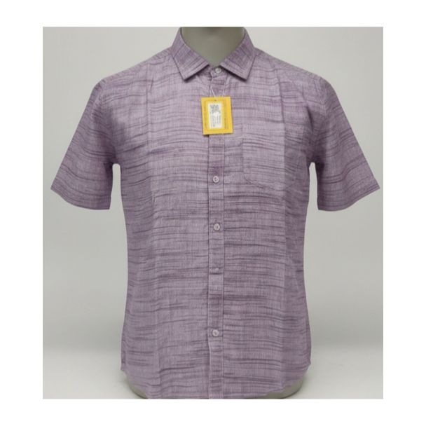 Light Purple Textured Cotton Men's Shirt Short Sleeve