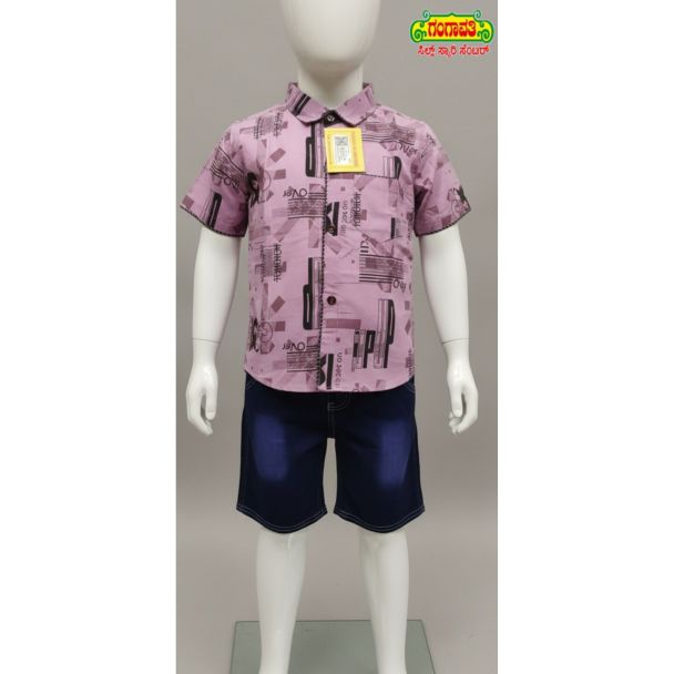 Lilac Printed Cotton Shirt & Shorts Set - Boys Outfit