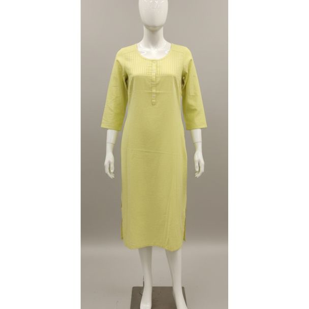 Lime Green 3/4 Sleeve Cotton Kurti with Pleated Yoke