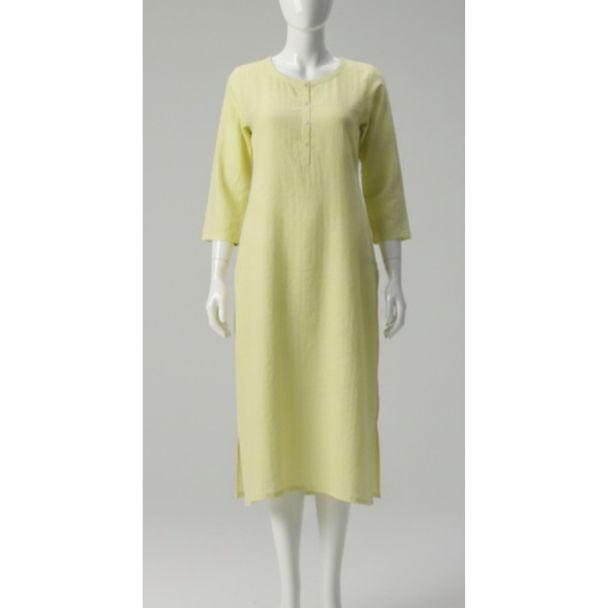 Lime Green Textured Cotton Silk Finish Kurti with 3/4 Sleeves
