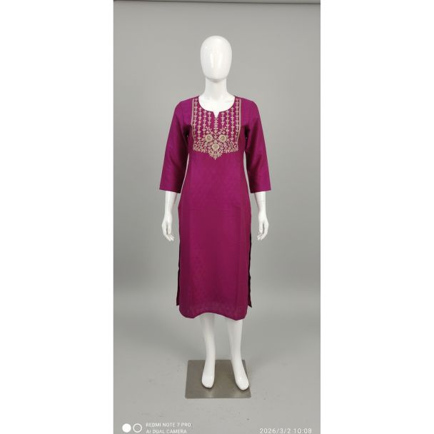 Why Buy This Product? The Magenta Embroidered Kurti stands out because of its beautiful design. The color is bright and cheerful. It's perfect for women looking for stylish yet affordable wear. The comfort and ease of wear make it a great choice for daily outfits. It effortlessly combines style and comfort, making it ideal for a range of occasions and adding a vibrant touch to your wardrobe.