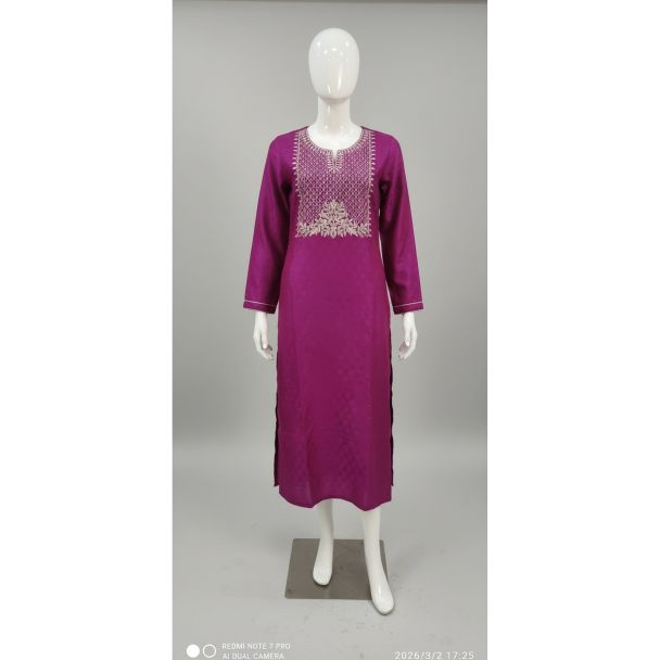 Elegant Magenta Embroidered Straight Cut Kurti for Women