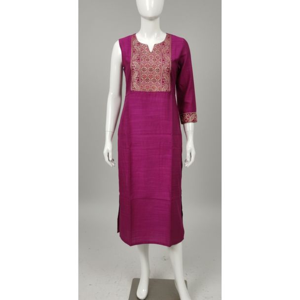 Magenta Straight Cut Kurti with Yoke Embroidery for Daily Wear