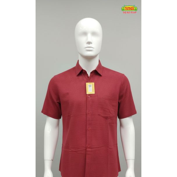 Maroon Micro Check Cotton Mens Shirt Half Sleeve