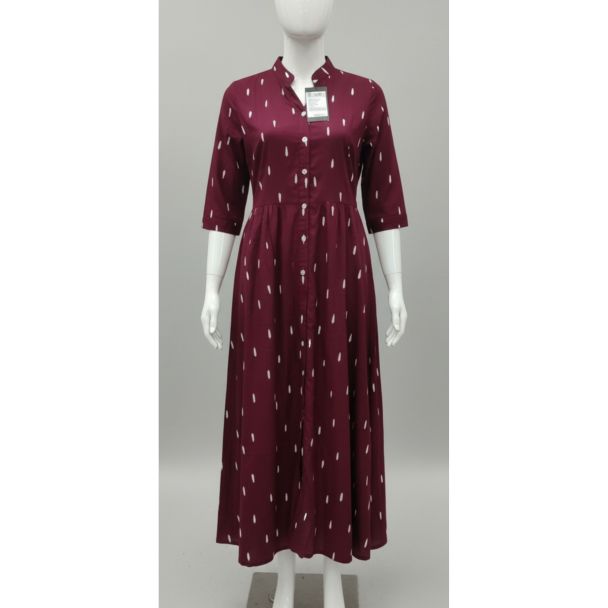 Why Buy This Product? This maroon printed cotton kurti is a perfect combination of comfort and style. The beautiful maroon shade, complemented by the delicate white print, makes it a standout piece for any event. The A-line fit flatters all body types, making it a versatile addition to your wardrobe. Its mid-range pricing ensures you get premium quality. Embrace elegance and style with this must-have kurti, designed to make you feel your best.