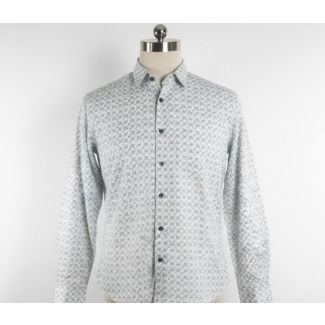 2. Light blue men's shirt with a dotted pattern, long sleeves and a collar.