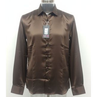 Rich Brown Satin Men's Shirt - Long Sleeve, Collared Neck