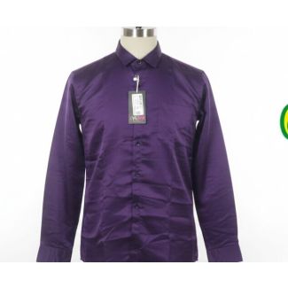Rich Purple Silk-Like Shirt Long Sleeve Collar Neck