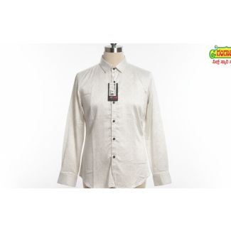Cream Dotted Print Cotton Shirt with Long Sleeves