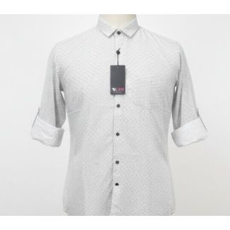 2. Men's sage green and white abstract geometric print cotton shirt with full sleeves