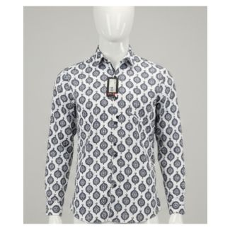 7. White and black patterned men's slim fit cotton shirt on a mannequin India
